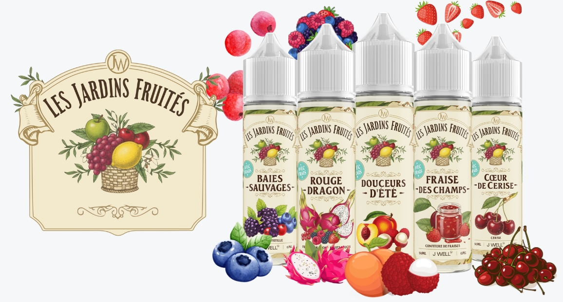 → La gamme Les Jardins Fruités 50ml se compose de 7 saveurs, trouvez la vôtre dès maintenant !